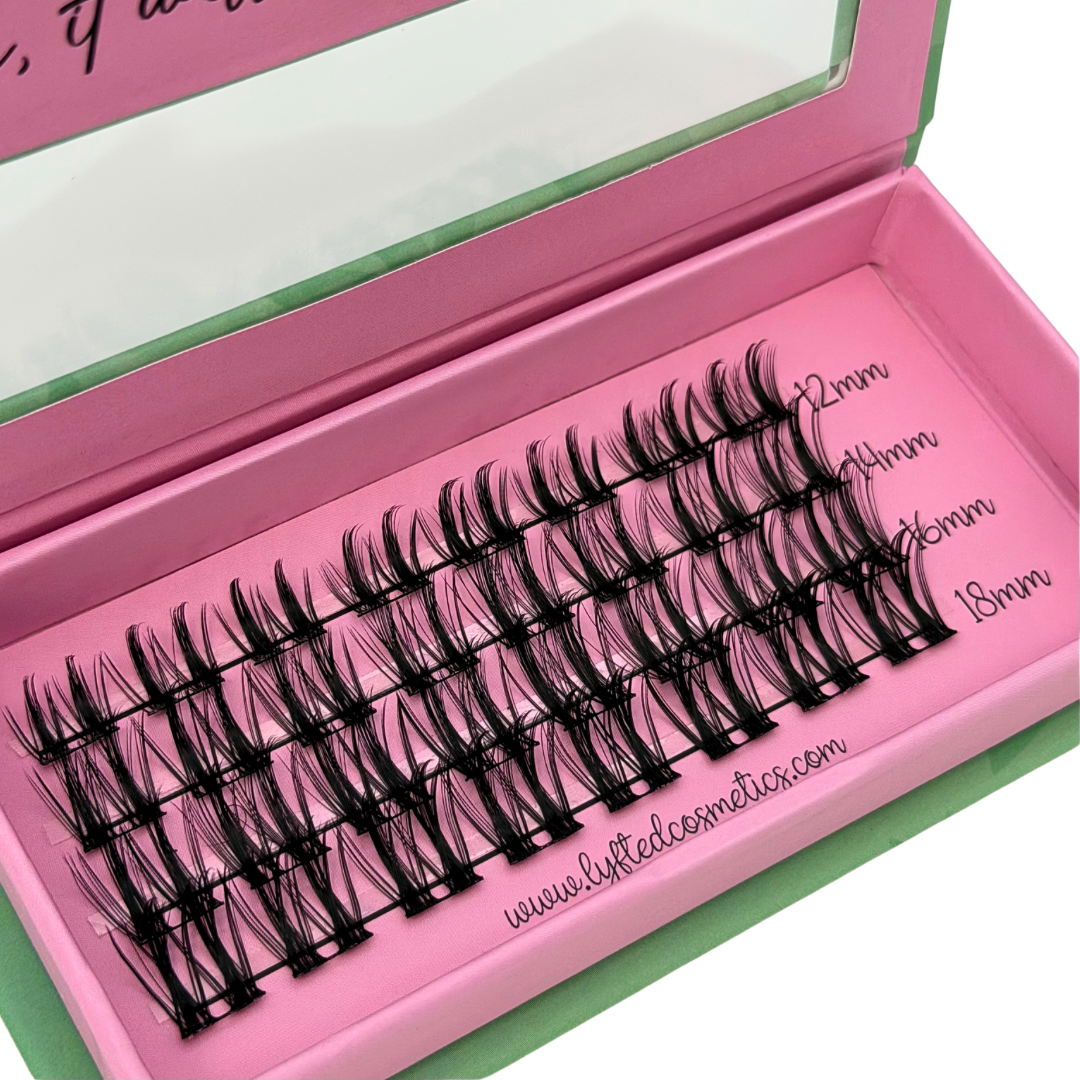 (Keep in mind each “cluster” can also be cut in half to better fit your individual needs/eye shape or to make application even easier!)