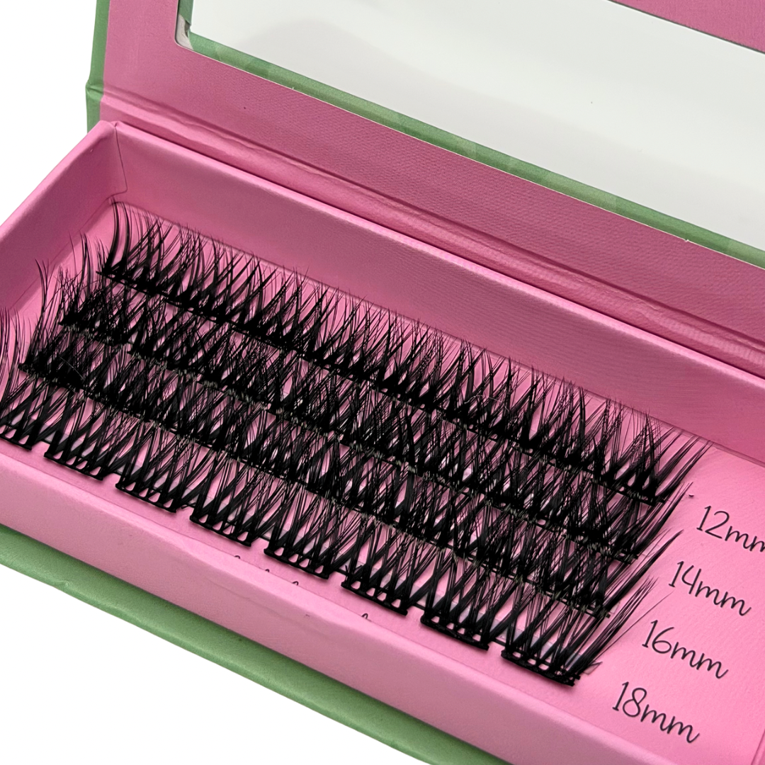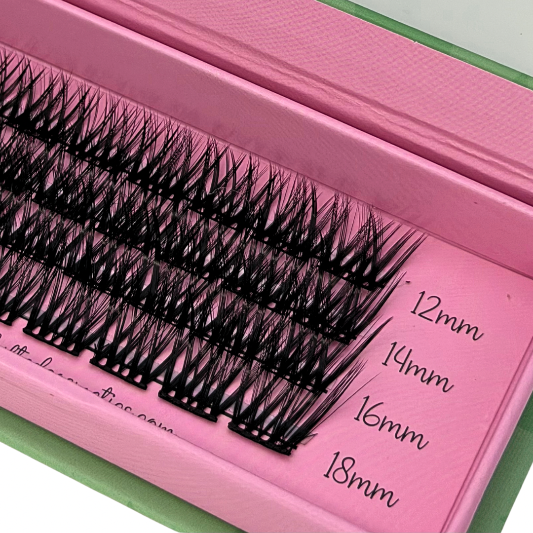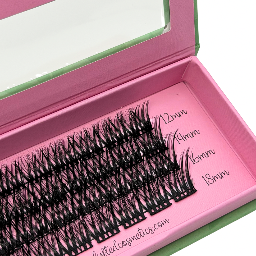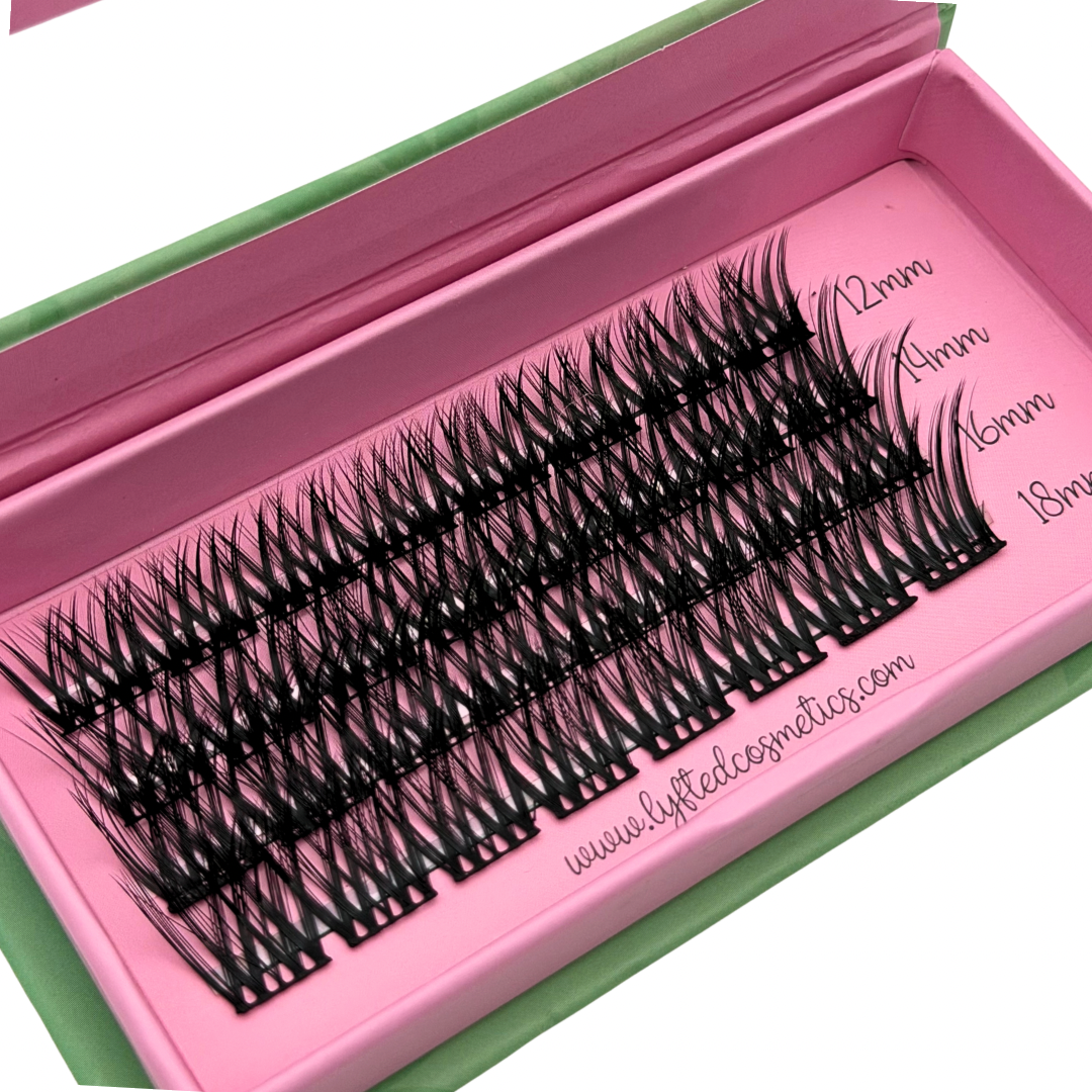 (Keep in mind each “cluster” can also be cut in half to better fit your individual needs/eye shape or to make application even easier!)