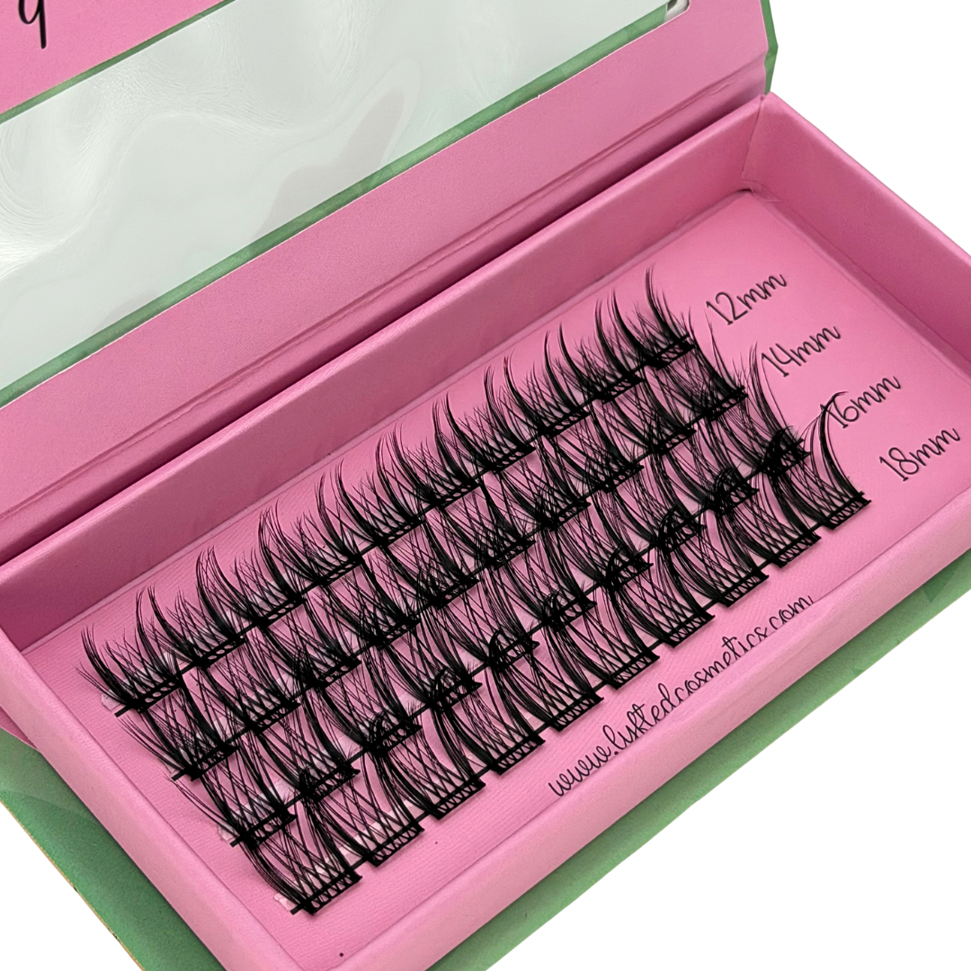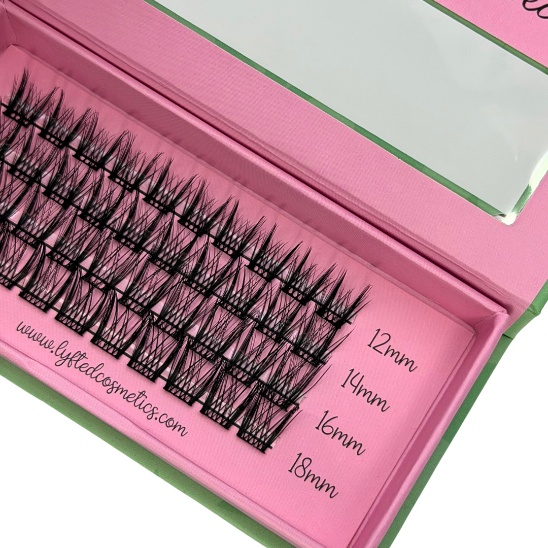 (Keep in mind each “cluster” can also be cut in half to better fit your individual needs/eye shape or to make application even easier!)