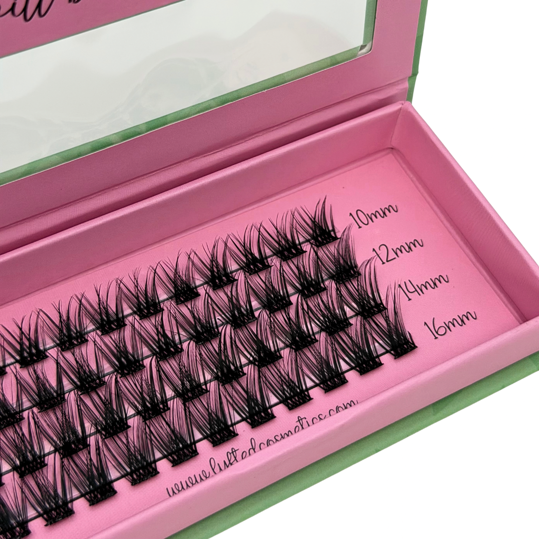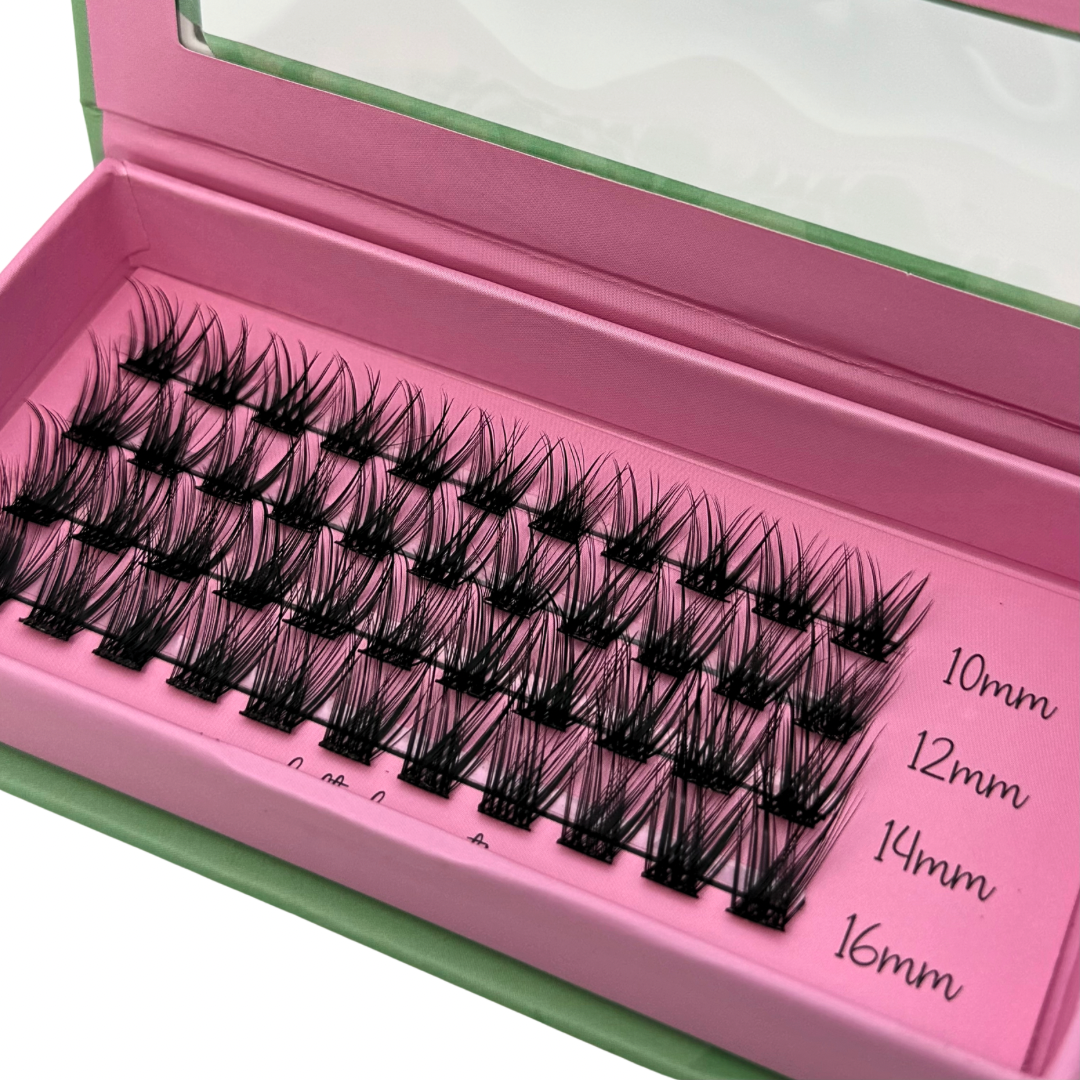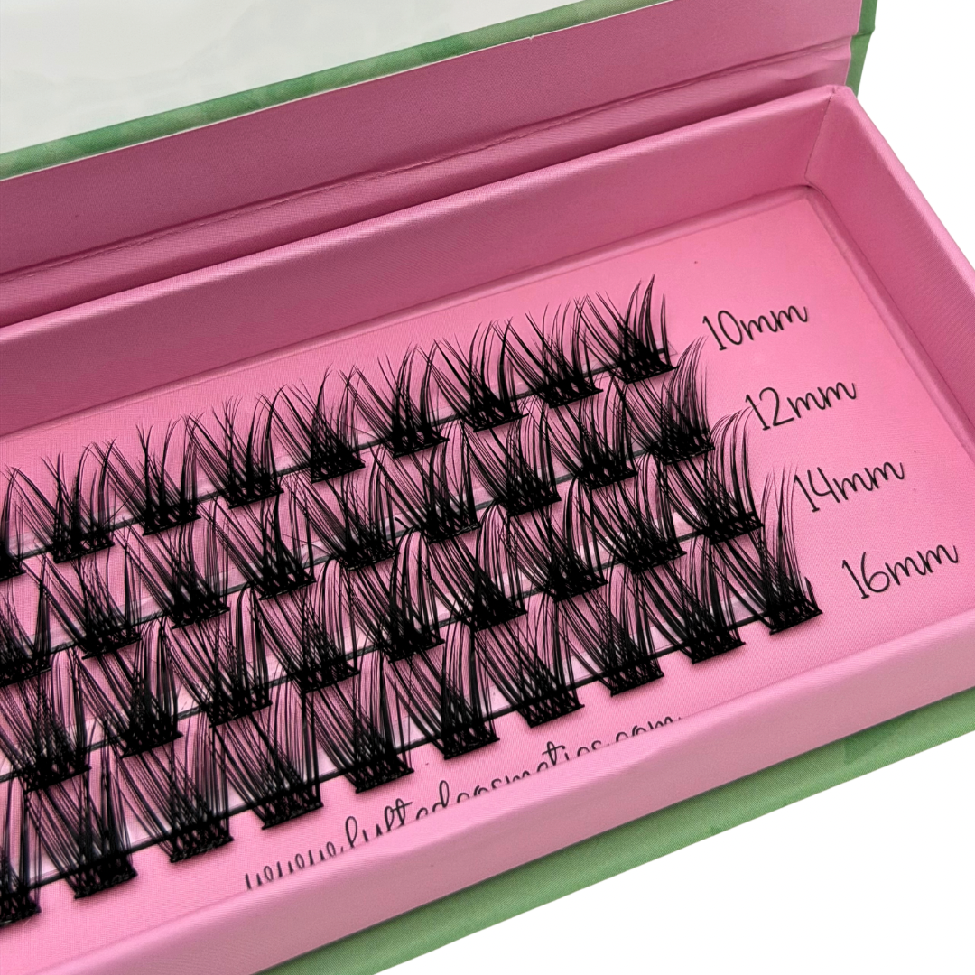 (Keep in mind each “cluster” can also be cut in half to better fit your individual needs/eye shape or to make application even easier!)