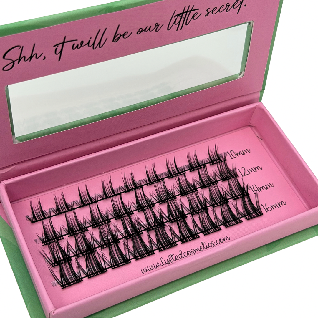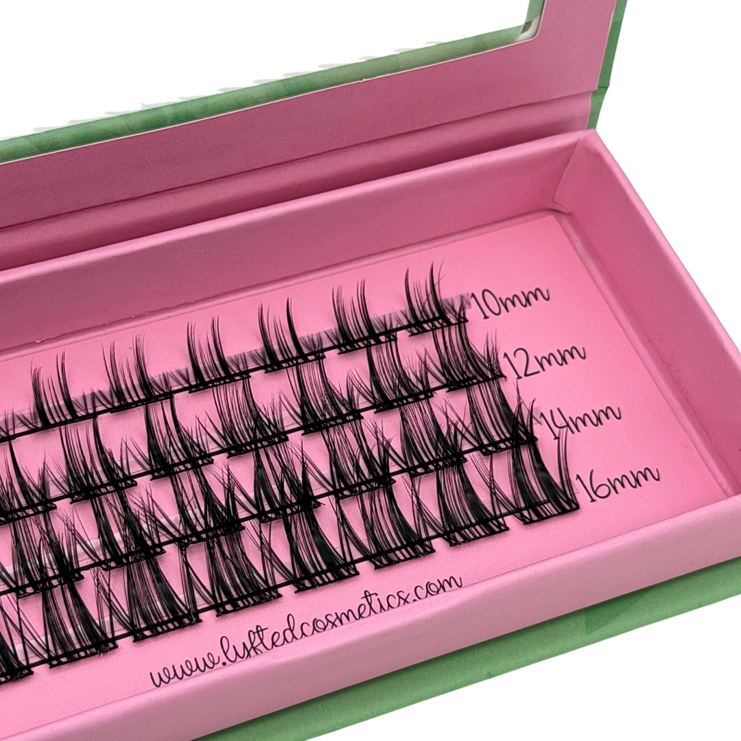 (Keep in mind each “cluster” can also be cut in half to better fit your individual needs/eye shape or to make application even easier!)