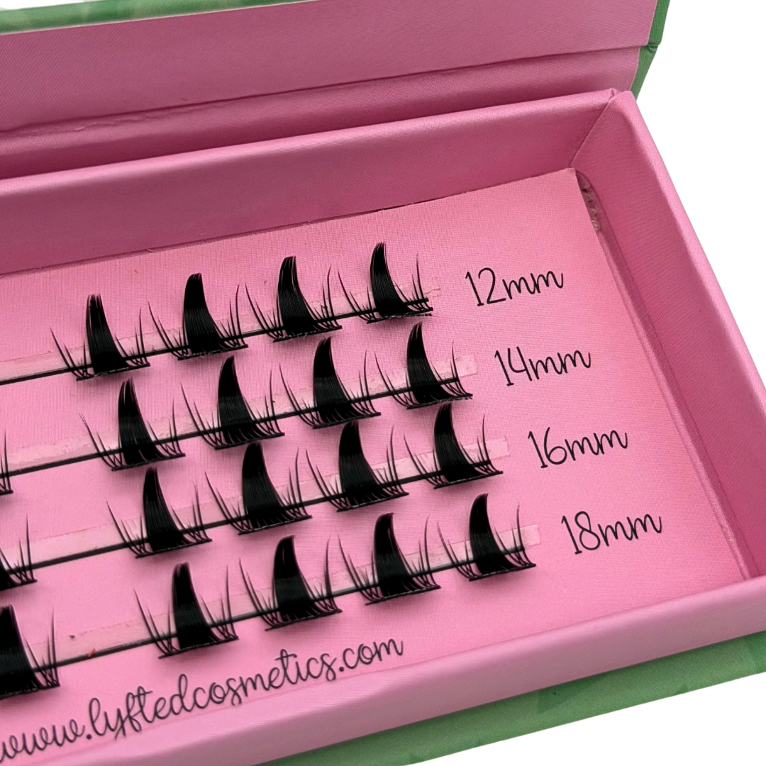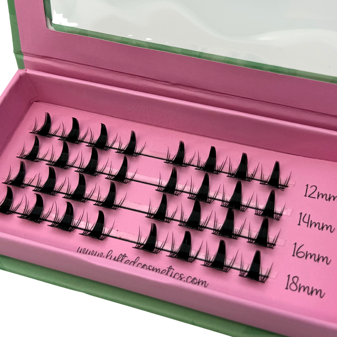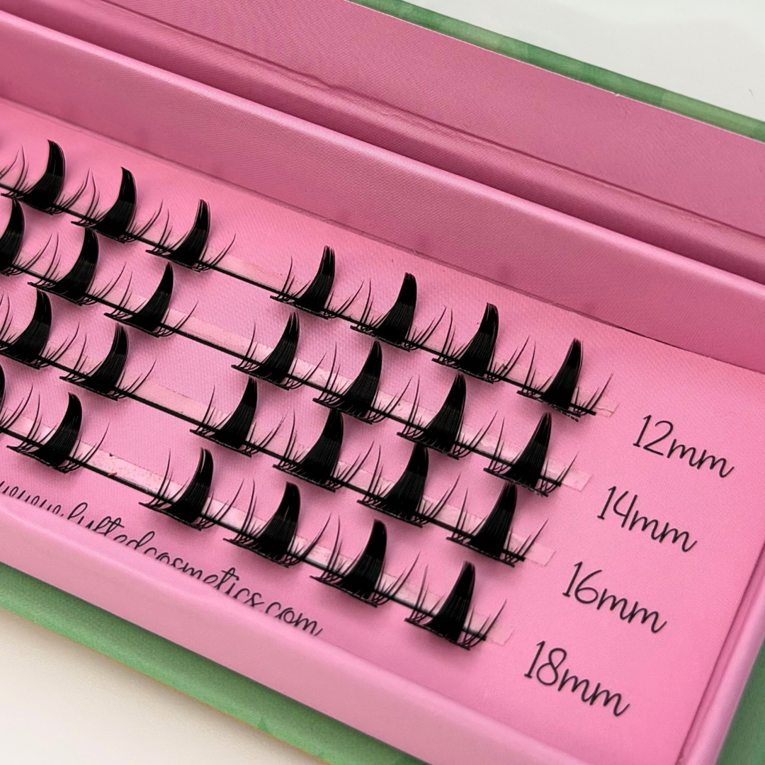 (Keep in mind each “cluster” can also be cut in half to better fit your individual needs/eye shape or to make application even easier!)