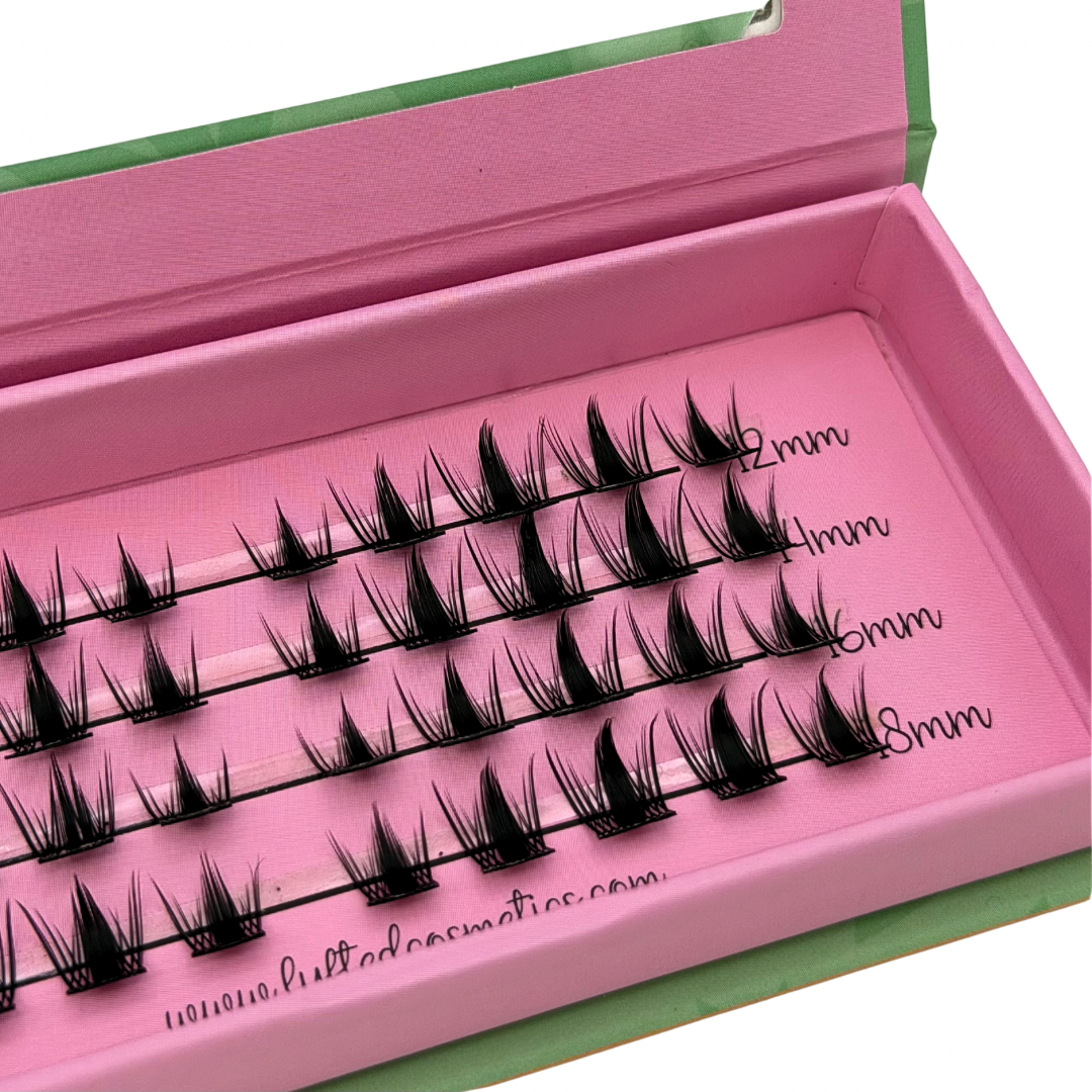 (Keep in mind each “cluster” can also be cut in half to better fit your individual needs/eye shape or to make application even easier!)