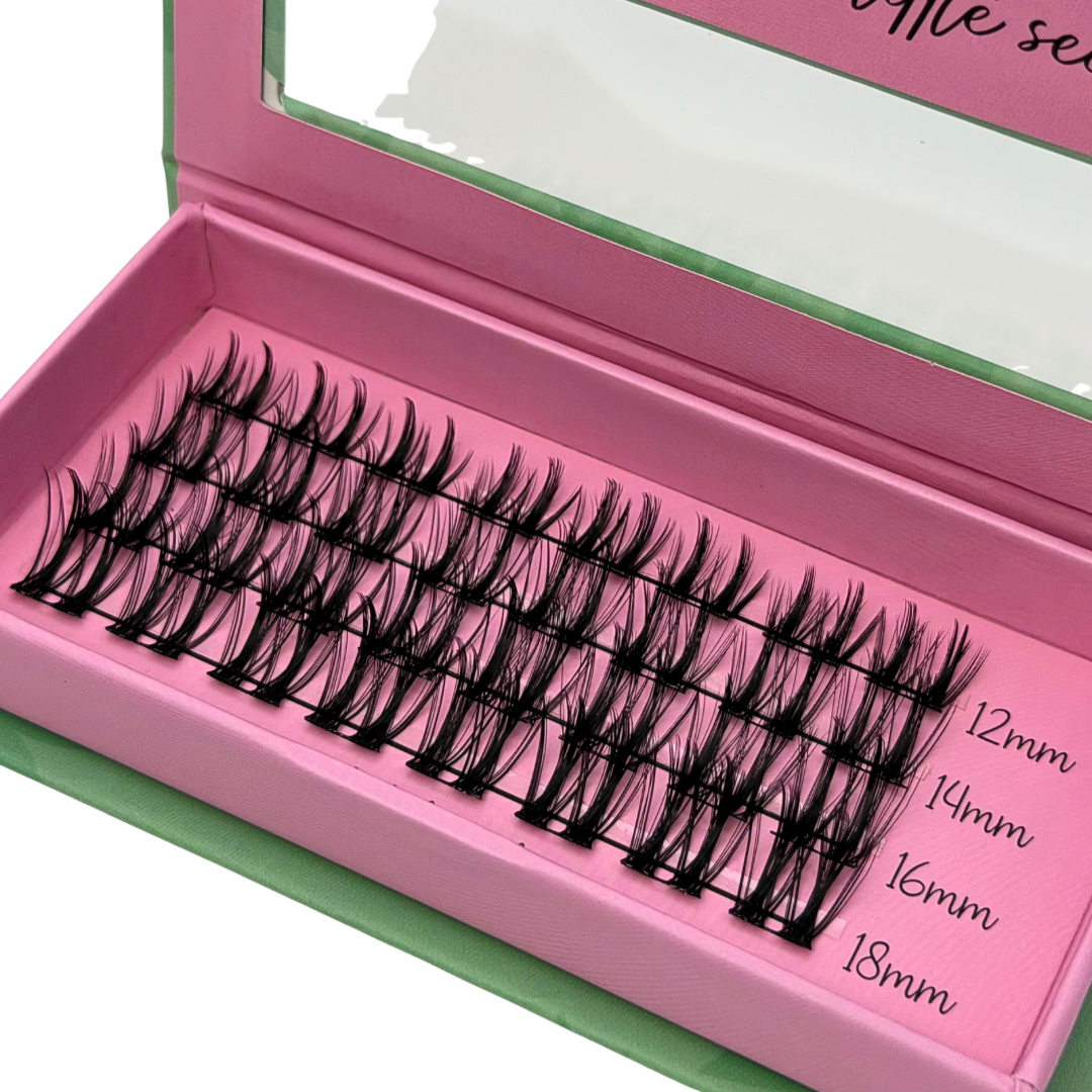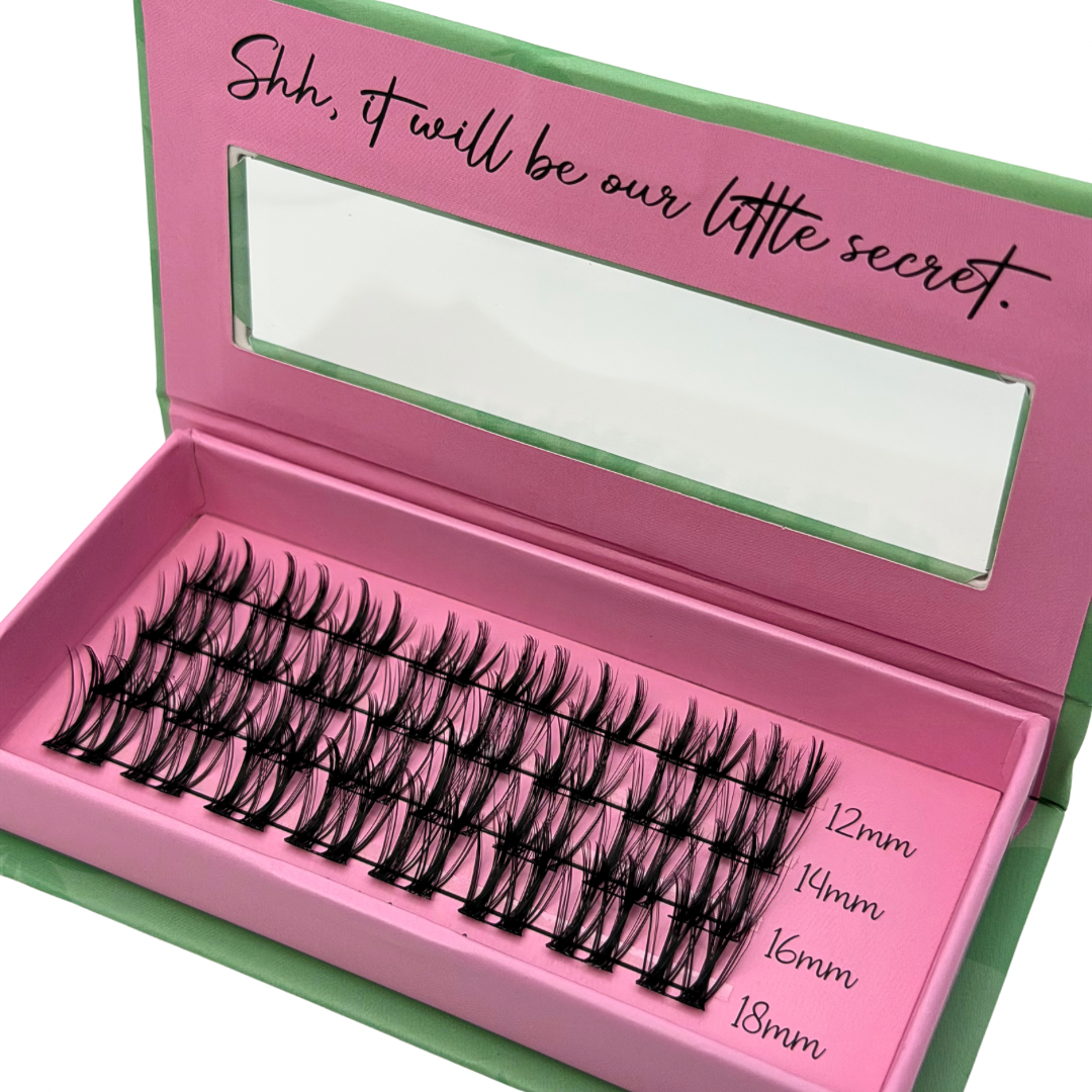 (Keep in mind each “cluster” can also be cut in half to better fit your individual needs/eye shape or to make application even easier!)